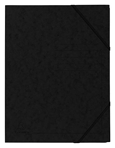 Exacompta - Ref 555411E - Elastisk mapp - storlek 240 x 320 mm, lämplig för A4-dokument, 355 gsm Mottled Pressboard, elastiska band - svart (förpackning med 5)
