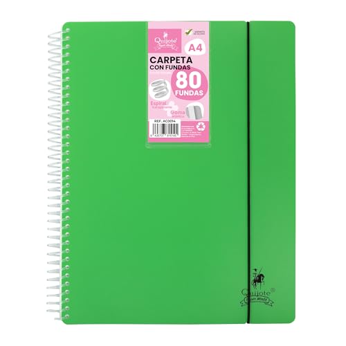 Starplast 182016ve, flexibel spiralmapp, mapp A4 med 80 transparenta höljen, A4-storlek, hållbara plastkappor för förvaring av dokument, ritningar, anteckningar med mera grön färg
