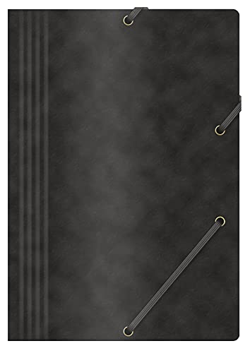 Office-produkter mapp med gummiband presspan/kartong A4 390 GSM, 3 x svart, hörnspännmapp elastiskt band, samlarmapp för dokument, förvaringsmapp, förvaringsmapp