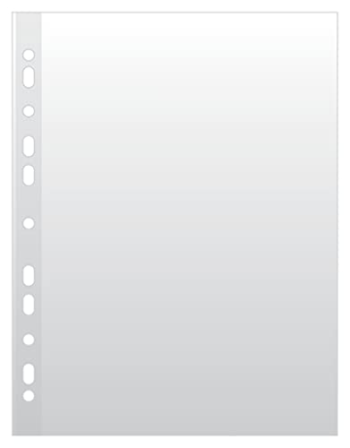 Officiella produkter 211415-90/100 stycken/DIN A4/korsad ovansida öppen genomskinliga fickor perforerade plastfodral för dokument papper filer mapp/PP/transparent 50 mikron, transparent