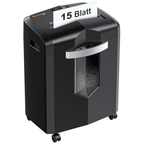 Bonsaii 15-ark dokumentförstörare, P4-dokumentförstörare kan strimla CD, kreditkort och häftklamrar, pappershanteringssystem, hemkontor dokumentförstörare med 20 l behållare och hjul med bromsar