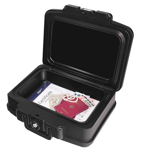 Brihard certifierad dokumentkassett 2013, A5 – vattentät och brandsäker dokumentlåda med nycklar, för värdesaker och dokument, bärbart kassaskåp med handtag – H 15,4 x B 35,4 x D 28,2 cm