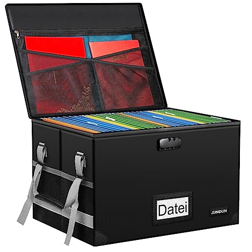 DocSafe Arkivlåda, brandsäker dokumentlåda med lås, arkivförvaring organiseringslåda med nätfickor, hopfällbar bärbar arkivlåda hemmakontor filskåp med handtag för hängande brev/juridisk mapp, svart