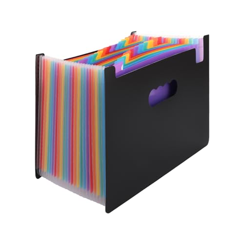 ASelected dokumentorganiserare i plast med 24 fickor för dokumentorganiserare, A4 storlek A-Z alfabet, färgad flik regnbåge dokumentlåda A4 expanderande fil