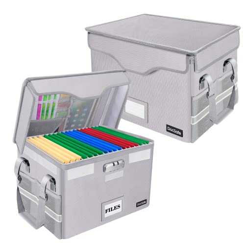 DocSafe Arkivlåda med lås, brandsäker dokumentlåda i flera lager med hjul, hopfällbar rullande arkivförvaringslåda med fickor, stort bärbart arkivskåp för hemmakontor för hängande mappar
