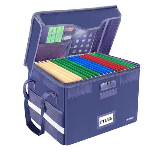DocSafe Arkivlåda, brandsäker dokumentlåda med lås, arkivförvaringslåda med inläggsficka, hopfällbar bärbar arkivskåp med handtag för att hänga brev/juridisk mapp, blå