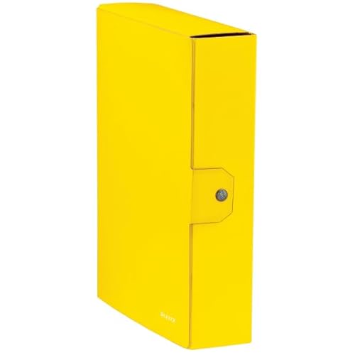 Leitz - Dokumentlåda med knappstängning, projektmapp i plastkartong, gul, 25 x 35 x 8 cm, 39670016