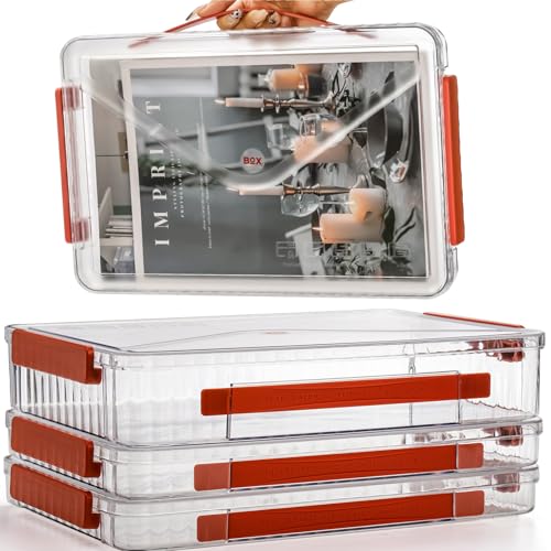 Mezchi Uppsättning av 3 bärbara papperslådor, organisatörer, 22,5 x 35,5 x 4/6 cm genomskinlig plastförvaringslåda med lock, stapelbar dokumentlåda projektfodral för att organisera A4-arkivpapper