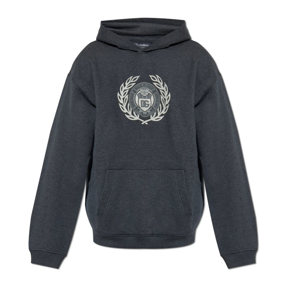 Dolce & Gabbana, Sweatshirts & Hoodies , Herr, S, Bomull, Grå Bomull Logo Hoodie