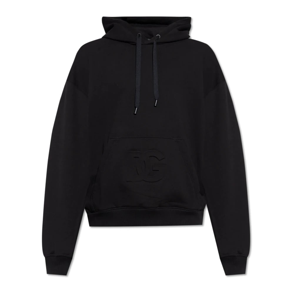Dolce & Gabbana, Sweatshirts & Hoodies , Herr, M, Bomull, Svart Bomull Logo Hoodie