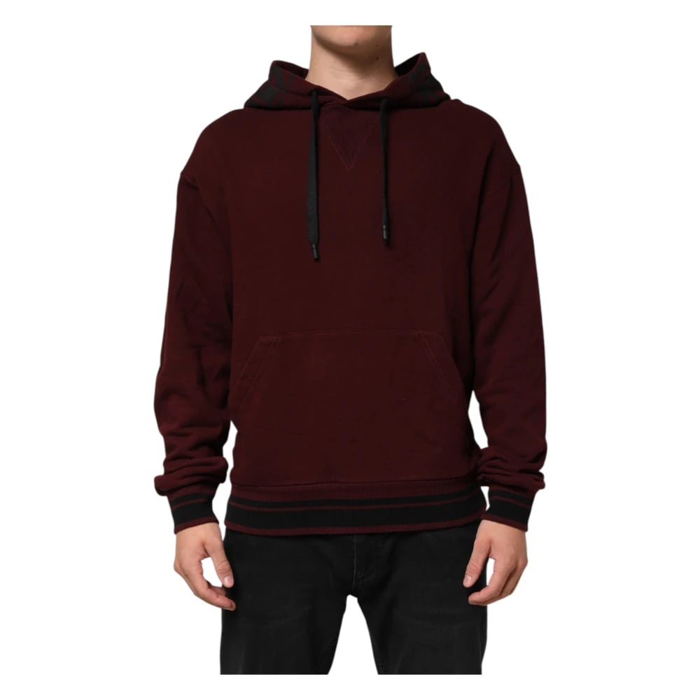 Dolce & Gabbana, Sweatshirts & Hoodies , Herr, M, Bomull, Burgundy Rutig Herr Hoodie Tröja