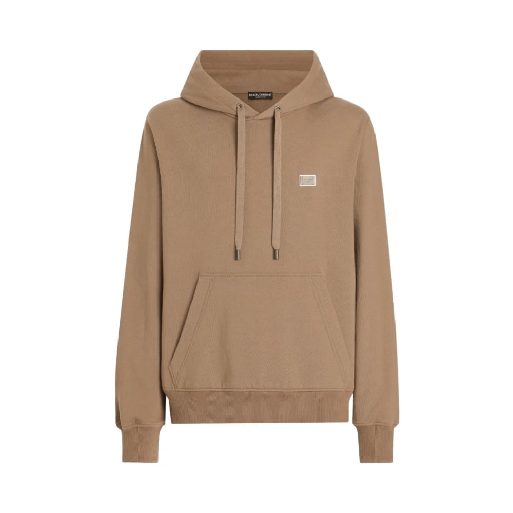 Dolce & Gabbana, Sweatshirts & Hoodies , Herr, L, Bomull, Kaffebrun Logo Plaque Hoodie