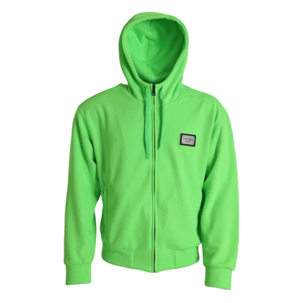 Dolce & Gabbana, Sweatshirts & Hoodies , Herr, S, Polyester, Neon Green Zip Hoodie Sweater