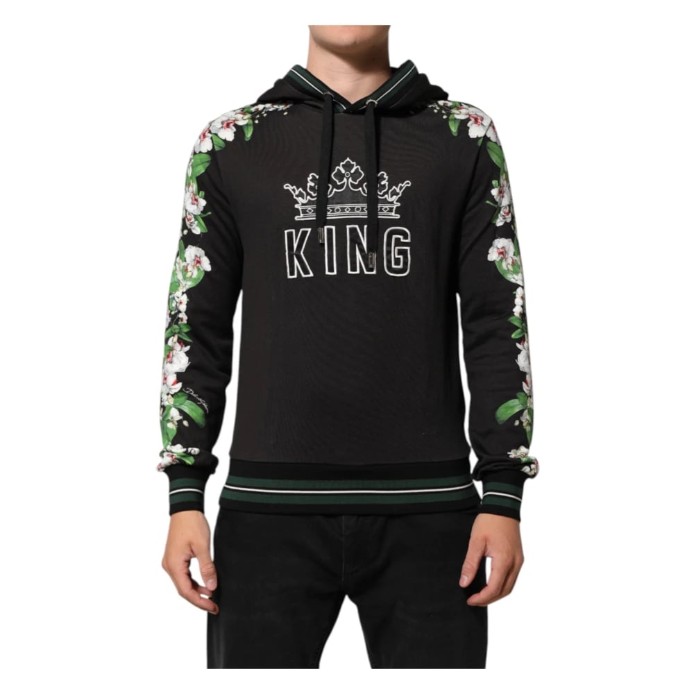 Dolce & Gabbana, Sweatshirts & Hoodies , Herr, S, Svart Orkidé Blomma Krona Hoodie Tröja