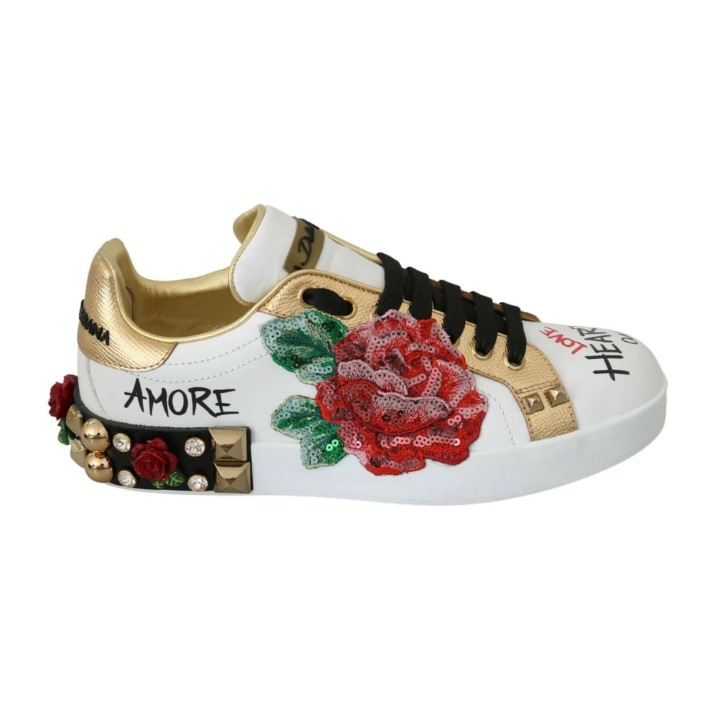 Dolce & Gabbana, Skor , Dam, 36 EU, Läder, Roses Paljettprydda Kristall Sneakers
