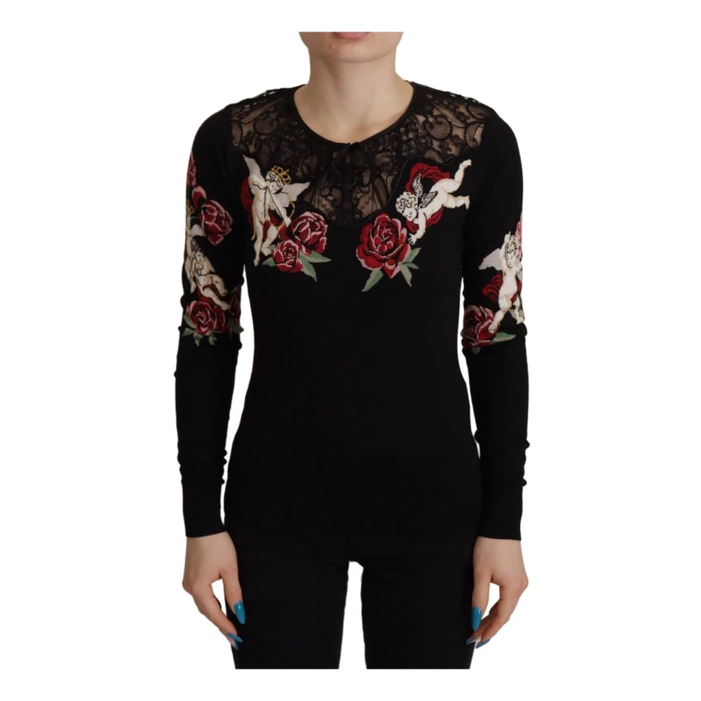Dolce & Gabbana, Blusar & Skjortor , Dam, 2Xs, Angel Rose Pullover Sweater