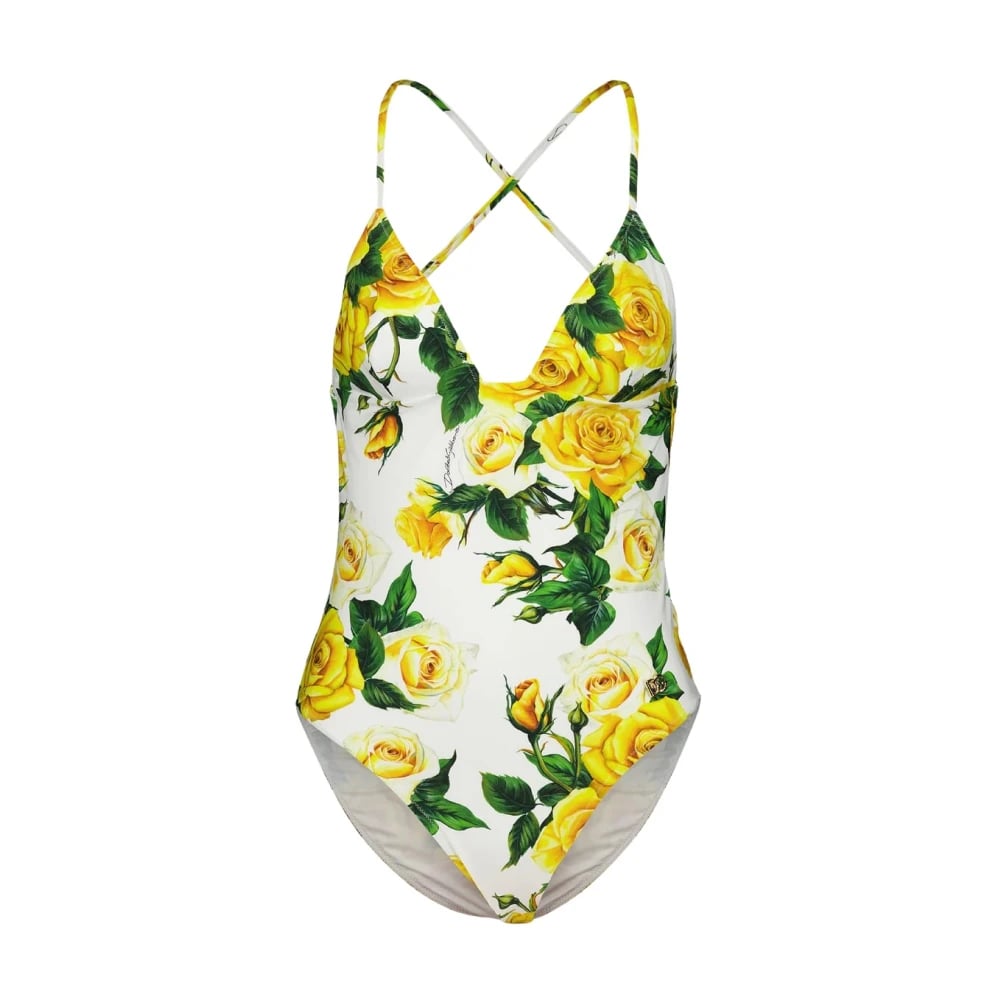 Dolce & Gabbana, Badkläder , Dam, M, Spandex, Rose Print Plunge Swimsuit