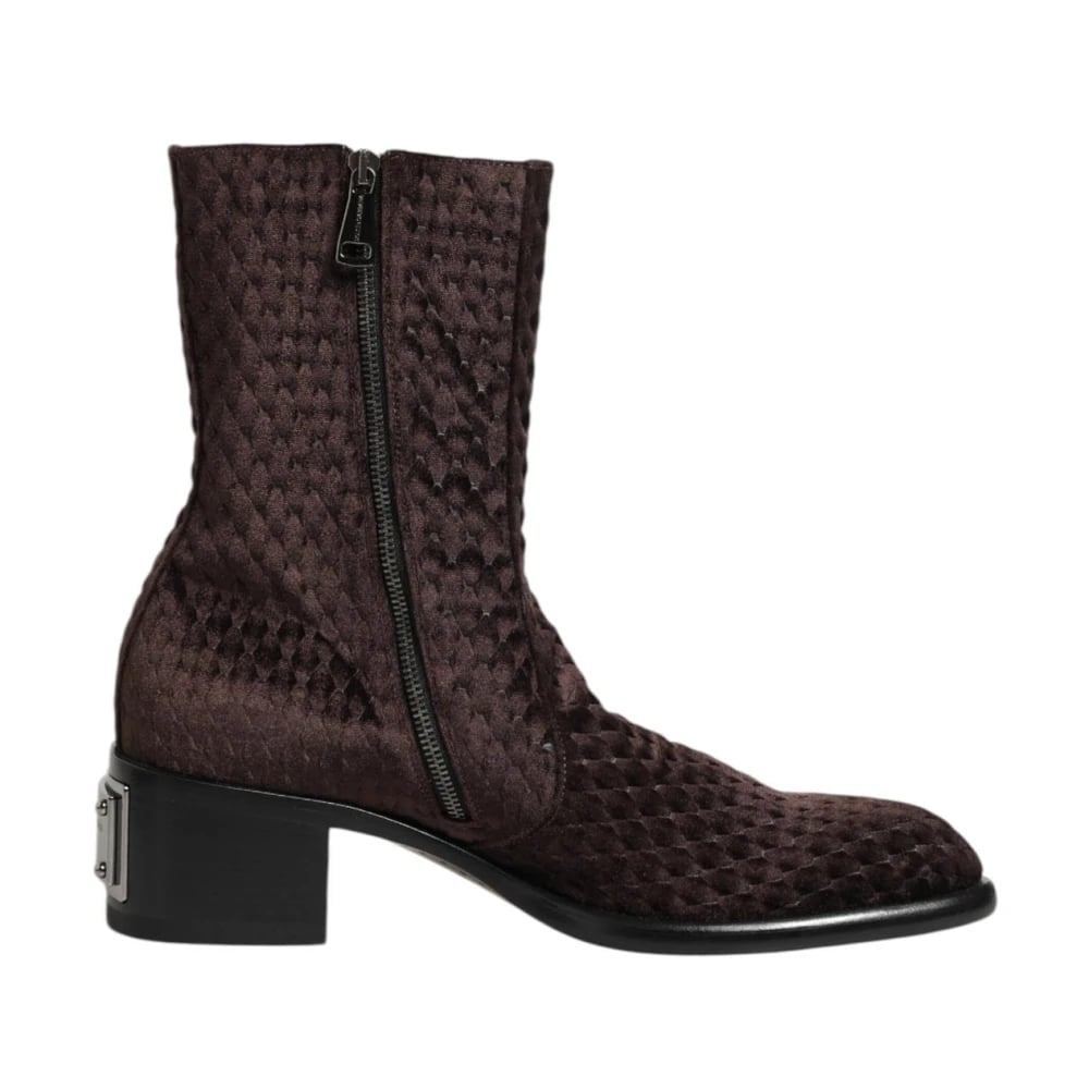 Dolce & Gabbana, Skor , Herr, 44 EU, Bomull, Brun Bomull Velvet Mid Calf Stövlar