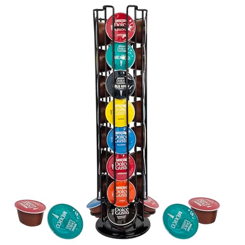 Lectorias Kapselhållare för Dolce Gusto, 32 st kaffekapselhållare, 360 graders roterande kapseldispenser, svart kapselorganisatör med halkfri bas, tillverkad av metall