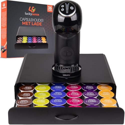 LuckySense Kapselhållare med låda Dolce Gusto – koppar hållare för 36 kaffekapslar – kapselhållare – inkl. 4 underlägg – rostfritt stål – svart