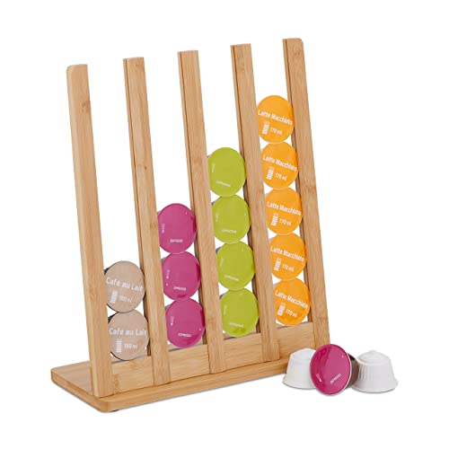 Relaxdays Kapselhållare för Dolce Gusto, kaffekapselhållare för 25 kapslar, kapselställ bambu, HBT: 34 x 32 x 14 cm, natur