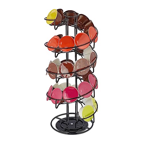 Relaxdays Kapselhållare kompatibel med Dolce Gusto, 32 kapslar, roterbar, kapselstativ metall, H x D: 41 x 17 cm, svart