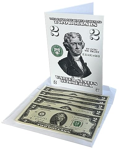 Boom Value TVÅ DOLLÄR BILL födelsedagskort, hedra 2 dollarräkningen – humor födelsedagskort för honom henne, med gratis kuvert och 5-2s
