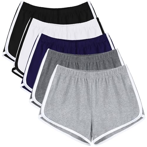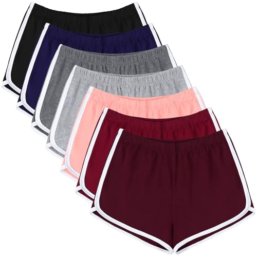 URATOT 7 Pack Womens Cotton Shorts, Dolphin Booty Athletic Gym Sports Shorts for Yoga Lounge Running