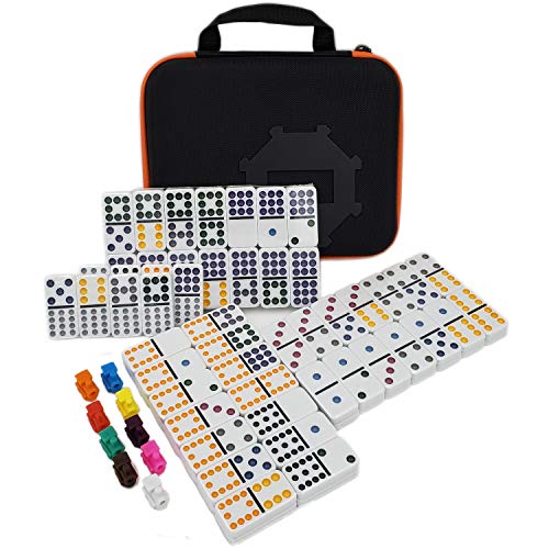 Kalolary Double 12 mexikanska tågdominoer, 91 plattor, nummer domino spel i ett tygfodral med 9 tåginstruktioner, häfte, poängblock och oktagonform hubb