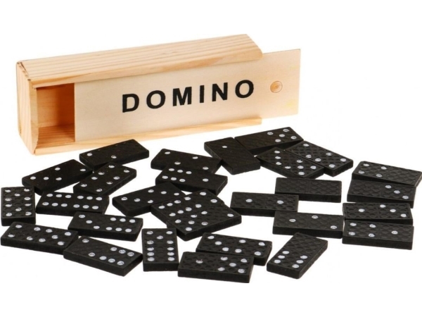 Chinchilla® Klassiskt dominospel i trälåda med lock | 28 stycken | Domino | Trä-svart | idealisk leksak för barn och fritid