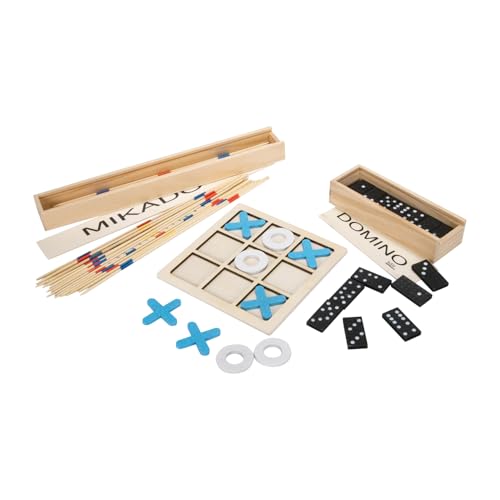 GICO Reselekset med tre klassiska spel av trä Domino Mikado och Tic Tac Toe för barn och vuxna – 7966