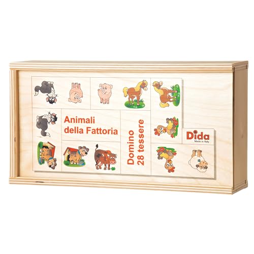 Dida - Dominospel för barn 28 brickor | Montessori spel 3 år och uppåt | Domino barn i trä