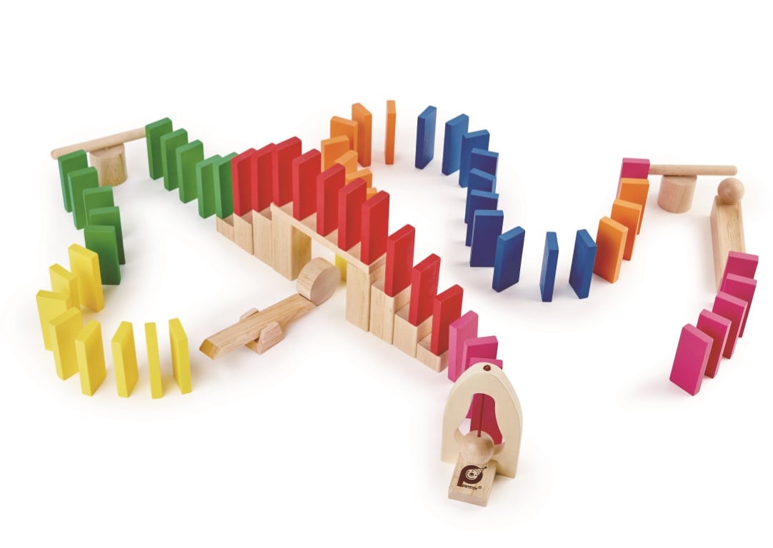 small foot Domino Rally Maxi, kedjereaktionsspel av trä inklusive hinder, 560 stycken, från 3 år, 6865