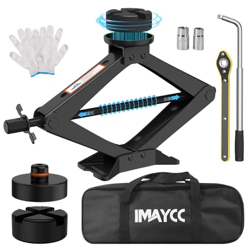 IMAYCC 2.5T domkraft, universell saxdomkraft för bil med gummistöd, bärbar domkraft med hjulmutternyckel, underhåll och reparation bil nödsituationssats för SUV MPV Tesla