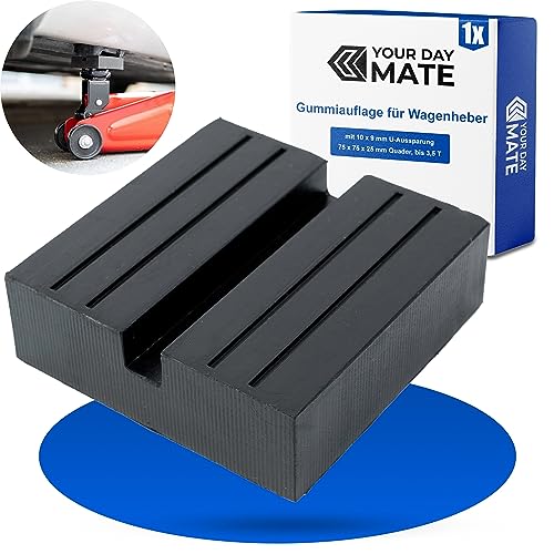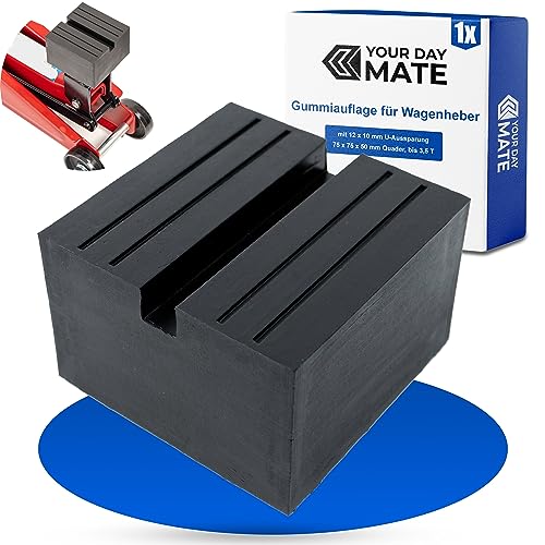 Universellt gummiskydd till domkraft, XL kub, 75 x 75 x 25 mm stöd med 10 x 10 mm U-spår, För alla bilar upp till 3.5 Ton, Slitsade ramskenor, Halkskydd, Domkraftskudde för att manövrera, Svart