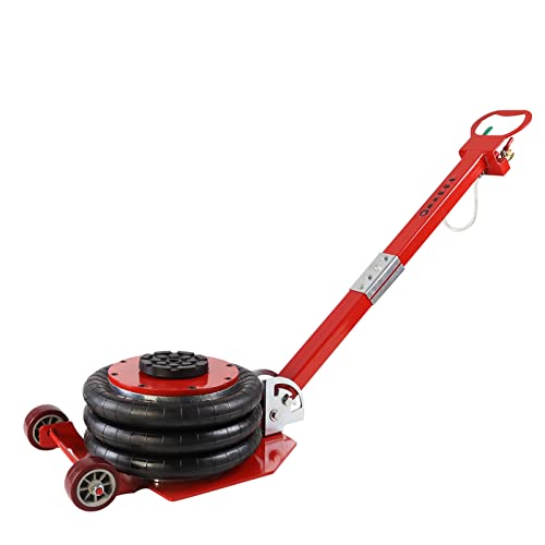VEVOR Air Jack, 3 ton/6600 lbs Triple Bag Air Jack, Airbag Jack med sex stålrör, Lyft upp till 17,7 tum/450 mm, 3-5 s snabblyftande pneumatisk domkraft, med sidohandtag för bil, garage, reparation (röd)