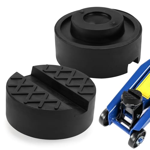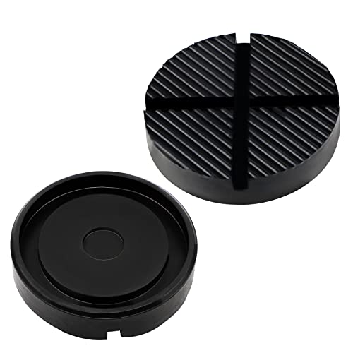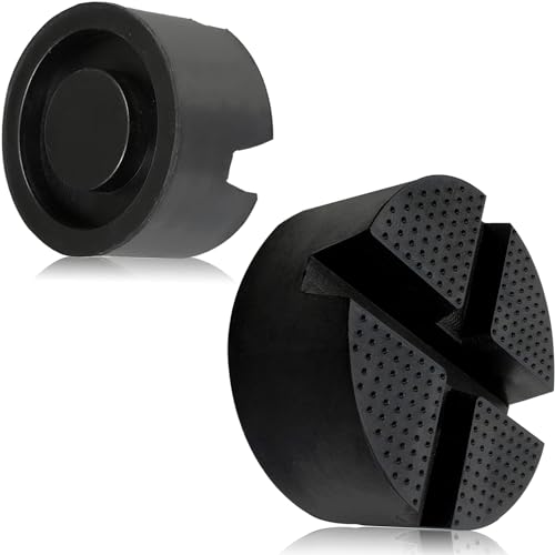 2 Pack, Universellt gummiskydd till domkraft, Rund Ø 65 x 25 mm stöd med 15 x 7 mm V-spår, För alla bilar upp till 3.5 Ton, Slitsade ramskenor, Halkskydd, Domkraftskudde för att manövrera, Svart