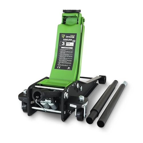 DRIVEUPTOOLS Hydraulisk domkraft för bil 3T – professionell lyftare med skottkärra, dubbelkolv, lyftområde 75–500 mm, lastkapacitet upp till 3 000 kg.