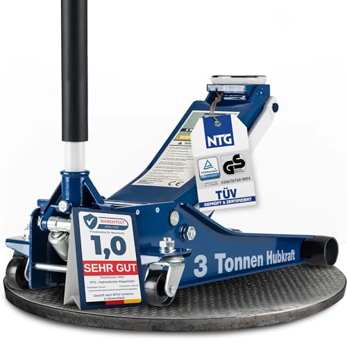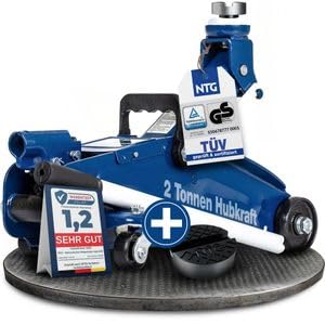 NTG Hydraulisk domkraft 2T (2 000 kg) – TÜV-certifierad – med spårgummistöd, domkraft 130–330 mm lyfthöjd för bil, personbil, SUV – domkraft av stål med gummidyna för säkert grepp