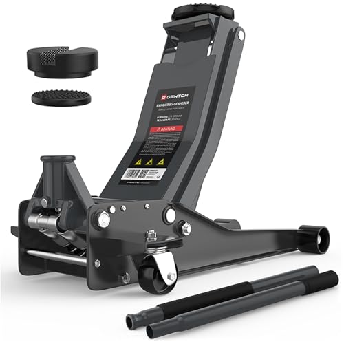 GENTOR domkraft hydraulisk 3T – platt 75–505 mm lyfthöjd, med 2 x gummistöd, professionell domkraft för bil, personbil, SUV och verkstad (antracit)