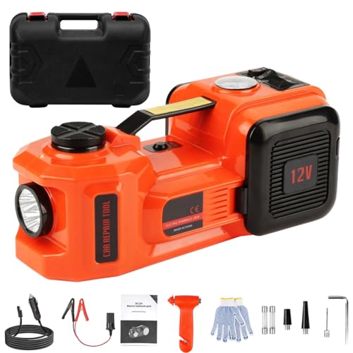 TKSE Elektrisk hydraulisk domkraft 12 V 5T med uppblåsbar pump och ljus - däckbytesverktyg för bil SUV och nödreparationsverkstäder
