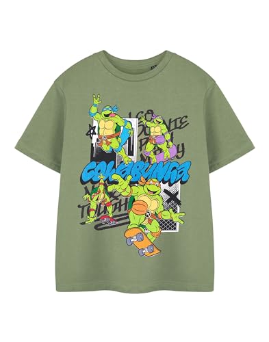 Teenage Mutant Ninja Turtles Barn Khaki Kortärmad T-shirt | Cowabunga TMNT Retro Graphic Tee för Pojkar & Flickor | Tecknad Karaktär Klädsel | Raphael Mikey Leo Donatello Film Merchandise Present