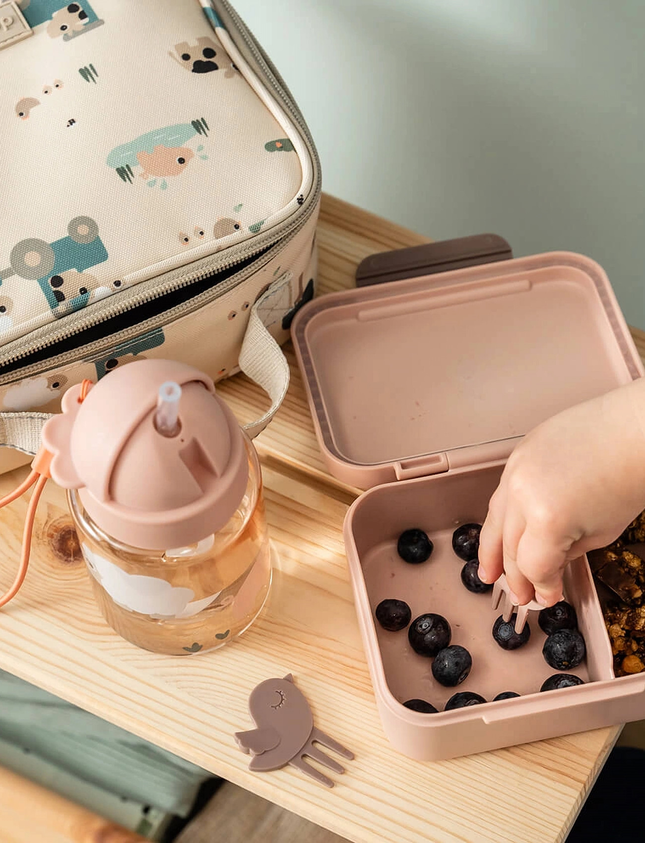 Done by Deer Tiny Lunch Box W/Snack Picks Tiny Farm Powder - Pink - 13X 11X H 6CM