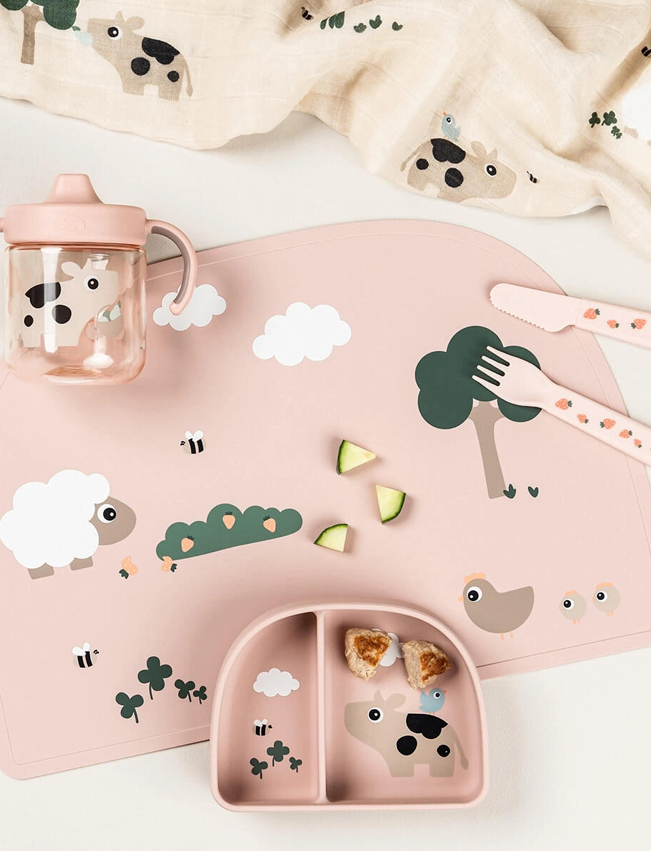 Done by Deer - Learning cup 360° Tiny farm - Powder - Ø 7,5 x H 11 cm