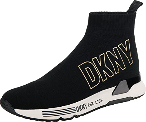 DKNY Nova Sock Sneaker Womens Black/Gold Trainers-UK 3 / EU 35.5
