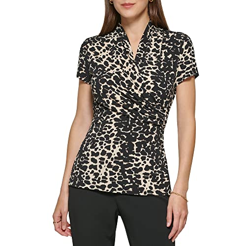 DKNY Kortärmad Side Ruche skjorta för kvinnor, Djurtryck, S