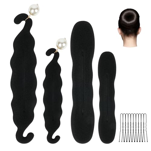 URAQT 4 st Pearl Hair Bull Maker, Fransk Frisyr Easy Donut Styling Diy Band, Skumsvamp Donut Maker Set för Att Göra Diy Frisyrer, Black Magic Hair Twist Styling för Tjejer Eller Kvinnor