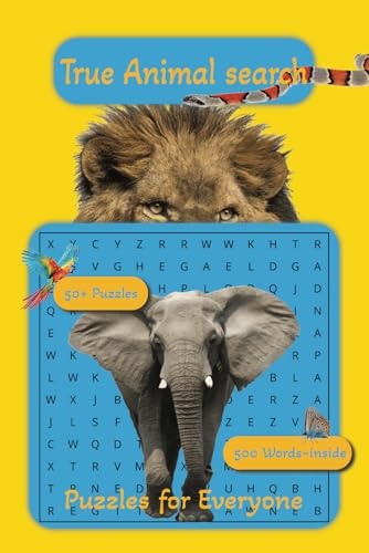 True Animal Search~Word Search: Word Search easy to read print about animals, wild kingdom, Sea life. | 6 x 9 Inches | 50+ puzzles... Gift For Out Door Activities Vacations Holidays and Free Times