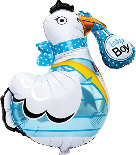 Folieballong stork, babyshower eller dop pojke, 60x78 cm, blå, 1‑pack