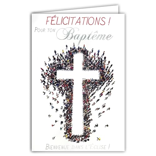 Grattis på ditt kristna dop med vitt kuvert 12 x 17,5 cm välkommen till kyrkan form latinskt katolskt kors för baby, barn, pojke, flicka, tonåring eller vuxen, man, kvinna, 66-1036 BAP
